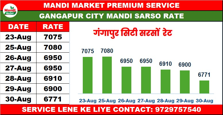 गंगानगर मंडी भाव ₹ 7100 मंदी ₹ 100