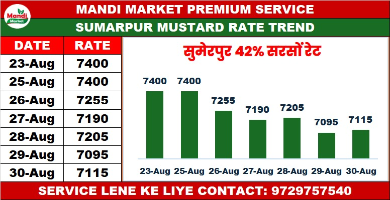 सरसों 42% कंडीशन भाव ₹ 7100/7115 तेजी ₹ 20