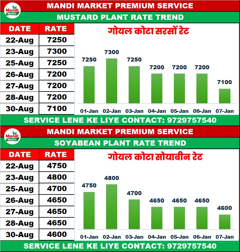 गोयल कोटा सरसों भाव ₹ 7100 तेजी ₹ 0