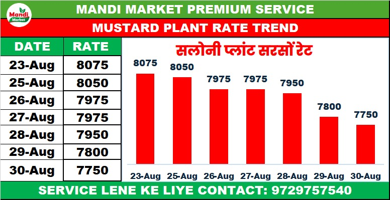 मोरना सरसों भाव ₹ 7750 मंदी ₹ 50