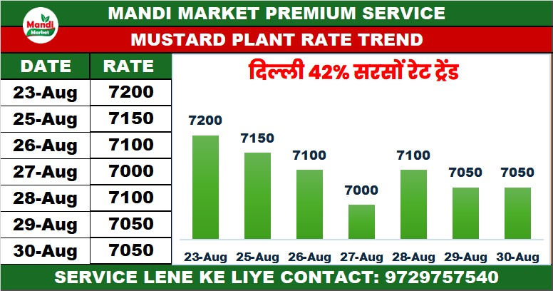 हरियाणा/पंजाब सरसों भाव ₹ 7000 + GST (NET PAYMENT 42%)