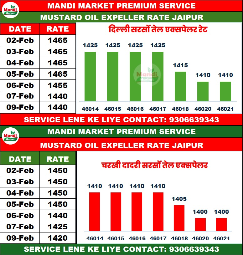 सरसों तेल एक्सपेलर भाव ₹ 1435 मंदी ₹ 5