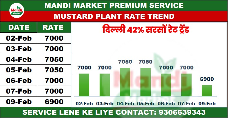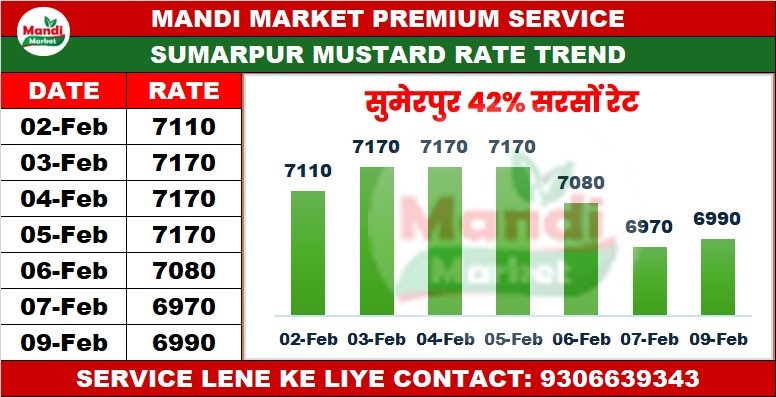 सरसों 42% कंडीशन भाव ₹ 6900 मंदी ₹ 100