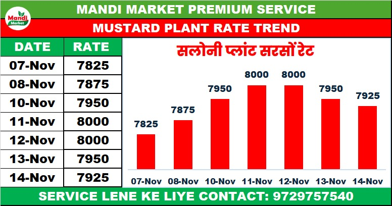 मुरैना सरसों भाव ₹ 7950 तेजी ₹ 25