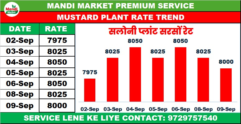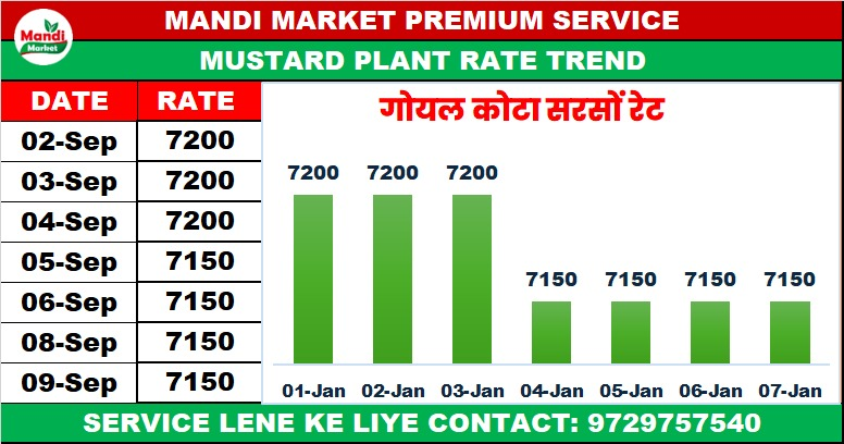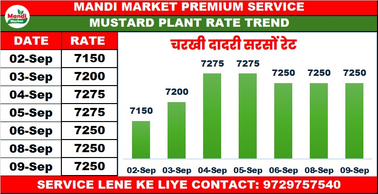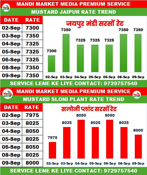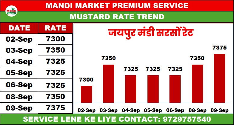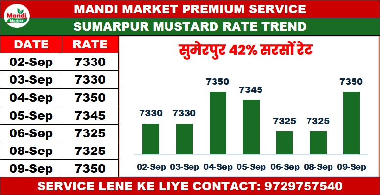 सरसों 42% कंडीशन भाव ₹ 7320/7350 तेजी 25