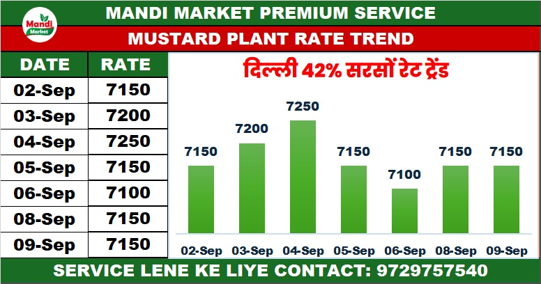 सरसों 42% कंडीशन भाव ₹ 7150 तेजी ₹ 0