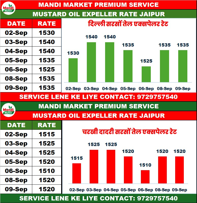 सरसों तेल एक्सपेलर भाव ₹ 1535 स्थिर ₹ 0