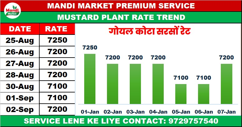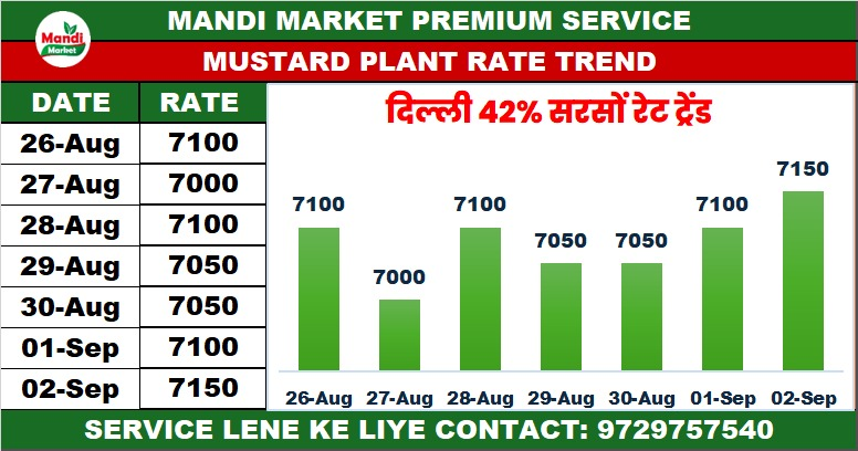 सरसों भाव ₹ 7161/- + GST (नेट पेमेंट 42%)