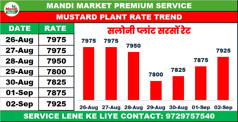 मुरैना (MORENA) सरसों भाव ₹ 7925 तेजी ₹ 50