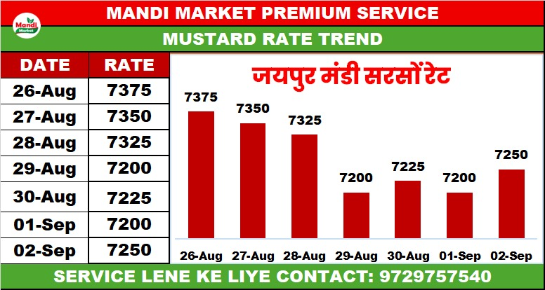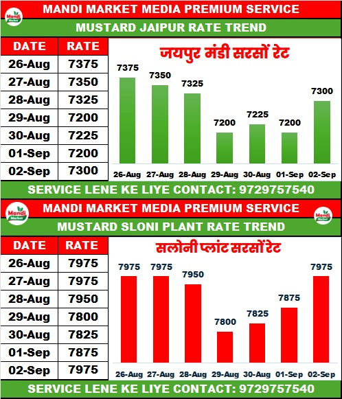 जयपुर मंडी (JAIPUR) सरसों भाव ₹ 7350/- + GST