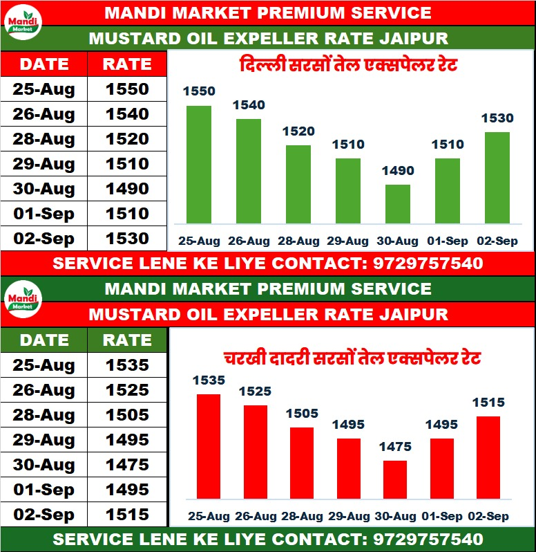 सरसों तेल एक्सपेलर भाव ₹ 1545 तेजी ₹ 40