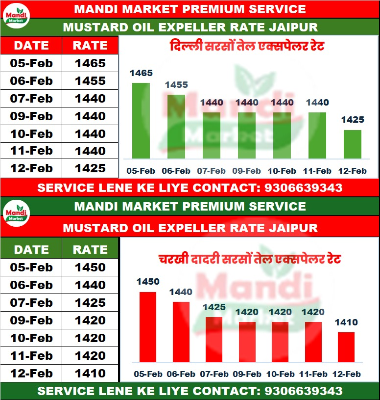 सरसों तेल एक्सपेलर भाव ₹ 1425 मंदी 15