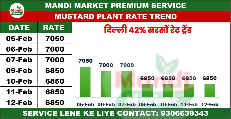 सरसों 42% कंडीशन भाव ₹ 6900 (ओल्ड) ₹ 7000