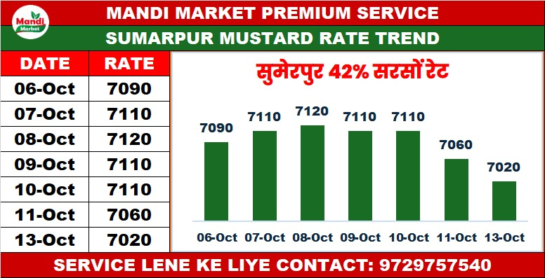 सरसों भाव ₹ 7010/7020 मंदी ₹ 40