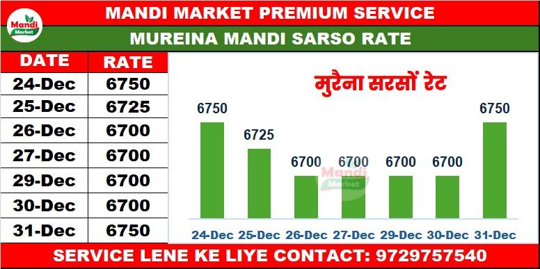 42/5/0 सरसों भाव ₹ 6750 बढ़त ₹ 100