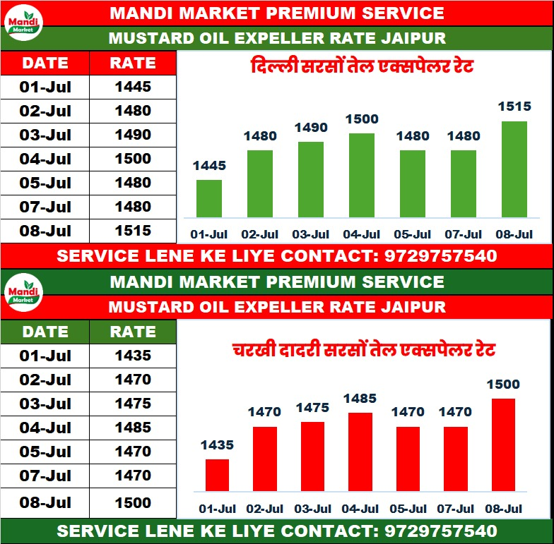 सरसों तेल एक्सपेलर भाव ₹ 1490 तेजी ₹ 15