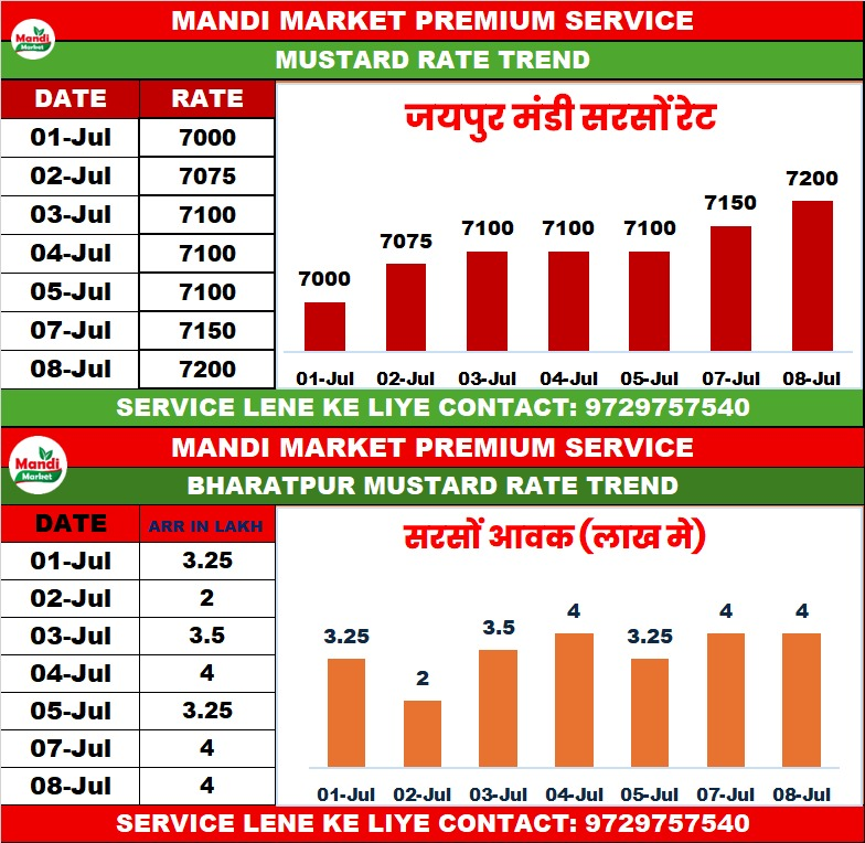 सलोनी पर 7800 पहुँचा सरसों का रेट | जयपुर गया 7200 पार | देखें ताजा रेट