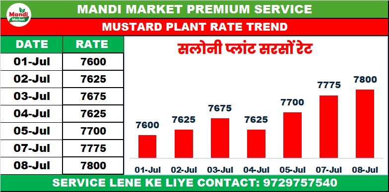 दिग्नेर आगरा (DIGNER AGRA) सरसों भाव ₹ 7800 तेजी ₹ 25