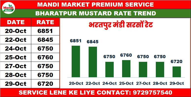 सरसों भाव ₹ 6720 मंदी ₹ 30
