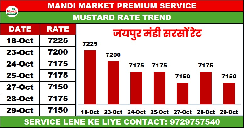 सरसों भाव ₹ 7100 मंदी ₹ 75