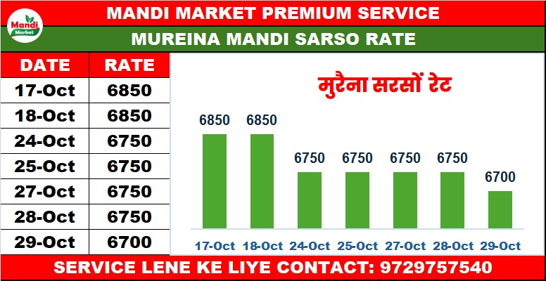 सरसों भाव ₹ 6700 मंदी ₹ 100