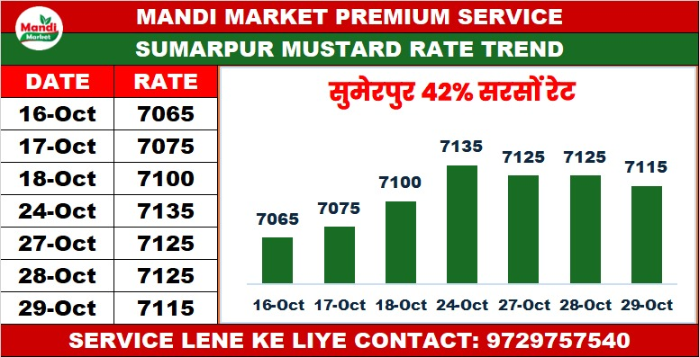 सरसों 42% कंडीशन भाव ₹ 7125 स्थिर