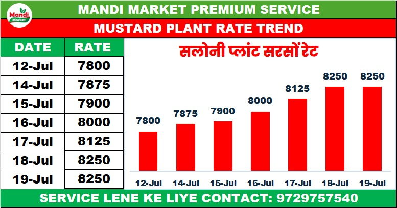 आगरा (सलोनी) सरसों भाव ₹ 8250 (GST सहित)