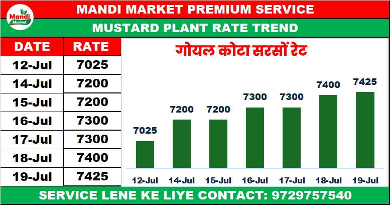 गोयल कोटा प्लांट सरसों रेट 7425 तेजी ₹ 25