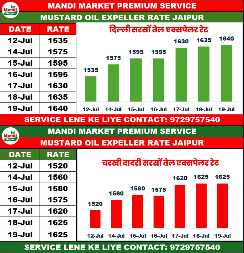 सरसों तेल एक्सपेलर भाव ₹ 1640/1650 तेजी ₹ 20