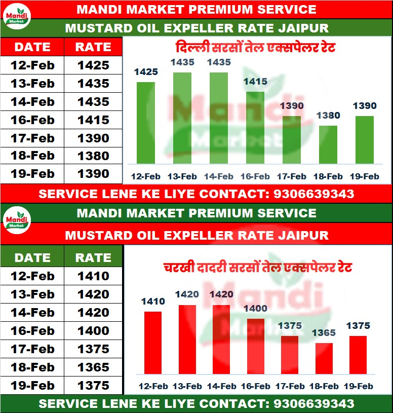 खरीदारों ने संभावित नुकसान की आशंका में सीमित खरीद बढ़ाई और 50–100 रुपये की तेजी दिखाई दी। इसलिए इस तेजी को टिकाऊ नहीं माना जा सकता। सरसों तेल भी इस समय दबाव में दिखाई दे रहा है और कल भी ₹5 टूटकर कच्ची घानी का भाव भरतपुर में 1390, जयपुर में 13680 और दिल्ली में एक्सपोलर का भाव 1390 पर प्रति 10 किलो रहा। प्लाट रेट बढ़ने पर सरसों खल में कल जयपुर में₹55 की तेजी देखने को मिली और भाव 2680 पर पहुंच गया, लेकिन भरतपुर में ₹20 टूटकर 2750 और सुमेरपुर में₹31 टूटकर 2630 रुपए प्रति क्विंटल देखी गई। अंतरराष्ट्रीय मोर्चे पर इंडोनेशिया के बी45 मैनडेट की चर्चा से पाम तेल को सहारा मिला और ईरान–अमेरिका तनाव की खबरों से क्रूड में हलचल रही, जिसका सकारात्मक असर घरेलू तेल बाजार और अप्रत्यक्ष रूप से सरसों पर भी पड़ा। इसके अलावा जमीनी स्तर पर न तो आवक में ठहराव दिखा है और न ही माल की वास्तविक कमी की पुष्टि हुई है। 7000 के नीचे बाजार में कमजोरी का संकेत पहले भी साफ था और वही ढांचा अभी कायम है। कुल मिलाकर मौजूदा सुधार को लंबी दौड़ नहीं बल्कि 50–100 रुपये की अस्थायी सांस माना जा रहा है, जहां ऊपर खबरों का सहारा है और नीचे आवक का दबाव अब भी बना हुआ है, इसलिए अगर एक-दो दिन भाव में तेजी दिखती है तो यह माल निकलने का बढ़िया मौका है। क्योंकि बाजार में आगे भी गिरावट तय है। व्यापार अपने विवेक से करें। सरसों की रेगुलर सर्विस के लिए 9306639343 पर मैसेज करें।