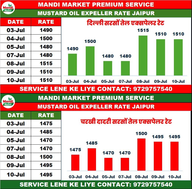 सरसों तेल (एक्सपेलर) भाव ₹ 1495 स्थिर