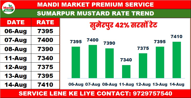 सरसों 42% कंडीशन भाव ₹ 7300 स्थिर