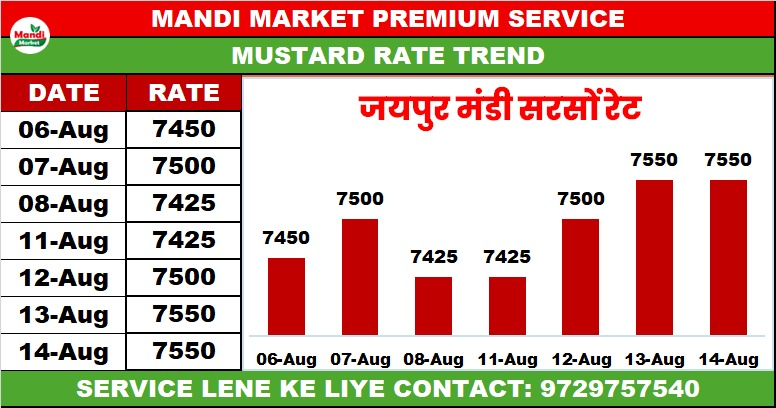 जयपुर सरसों भाव ₹ 7525 + GST