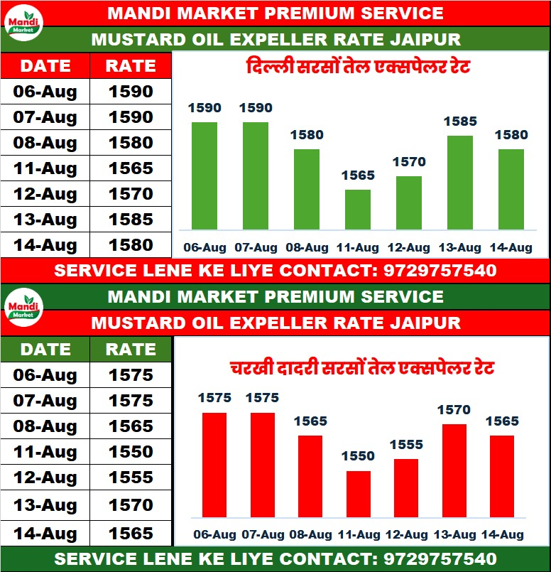 एक्सपेलर तेल भाव ₹ 1580 मंदी ₹ 5