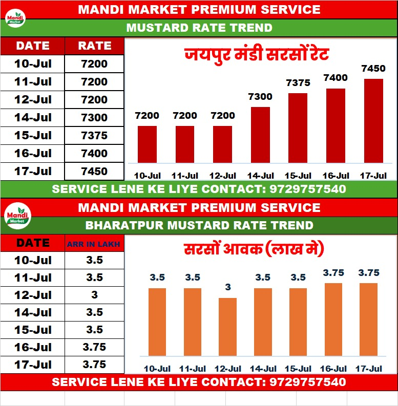 सरसों भाव ₹ 7425/7450 तेजी ₹ 50