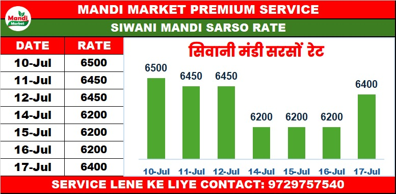 सरसों भाव ₹ 6400/7000 तेजी ₹ 100