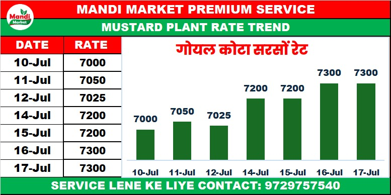 सरसों भाव ₹ 7100 तेजी ₹ 50