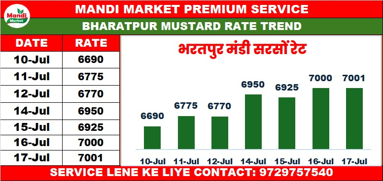 सरसों भाव ₹ 7001 तेजी ₹ 1