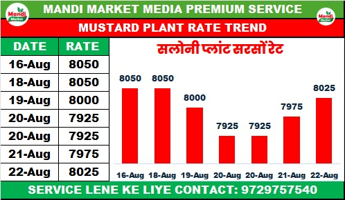 विदेशी बाजारों की तर्ज पर आज सरसों में दूसरे दिन भी तेजी जारी | सलोनी पर रेट गया 8000 के पार
