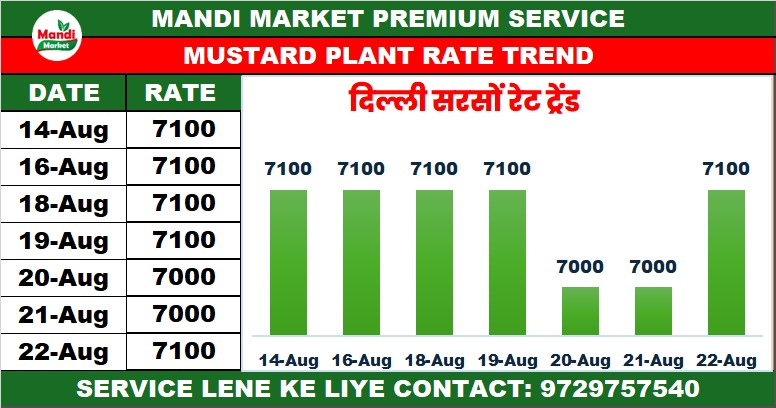 सरसों 42% कंडीशन भाव ₹ 7100 तेजी ₹ 100