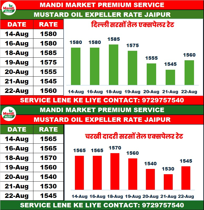 सरसों तेल एक्सपेलर (EXP OIL) भाव ₹ 1560 तेजी ₹ 15