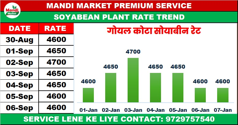 नई सोयाबीन भाव ₹ 4651 (शुभारंभ)