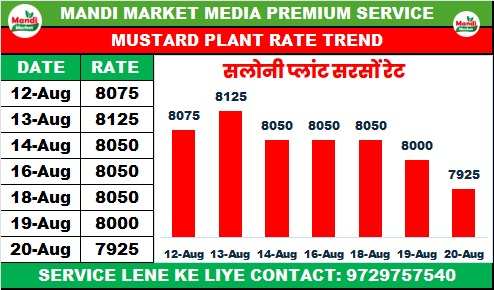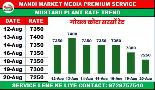 सरसों भाव ₹ 7300 मंदी ₹ 25