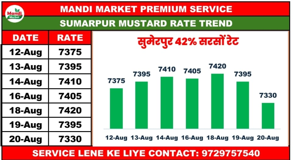 42% कंडीसन सरसों भाव ₹ 7300 मंदी ₹ 60