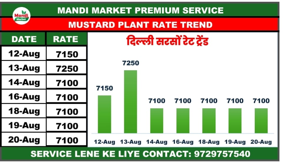 सरसों भाव ₹ 7000 (मंदी ₹ 100)