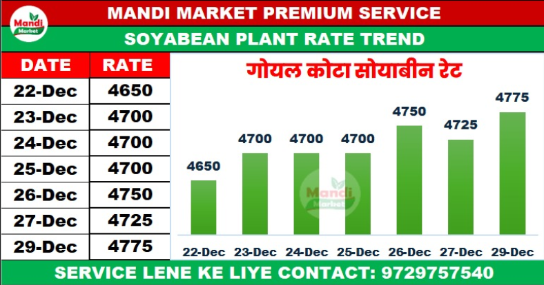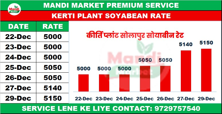 धीरेंद्र सोया भाव ₹ 4900 तेजी ₹ 80