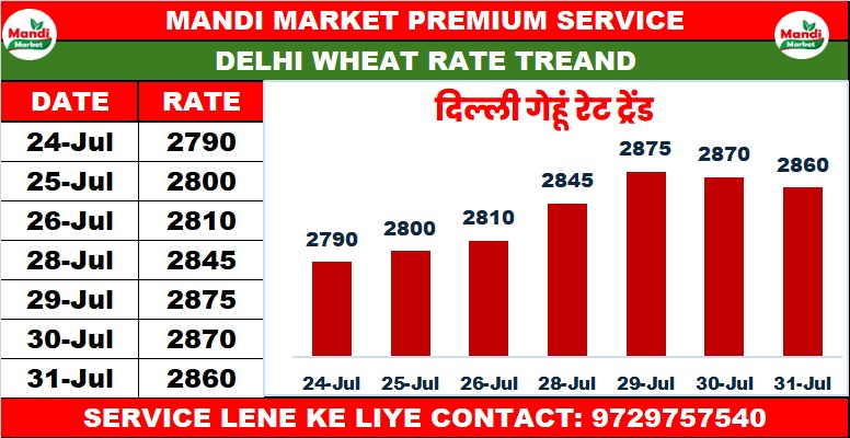 गेहूं (WHEAT) (नेट/NET) भाव ₹ 2850 तेजी ₹ 0