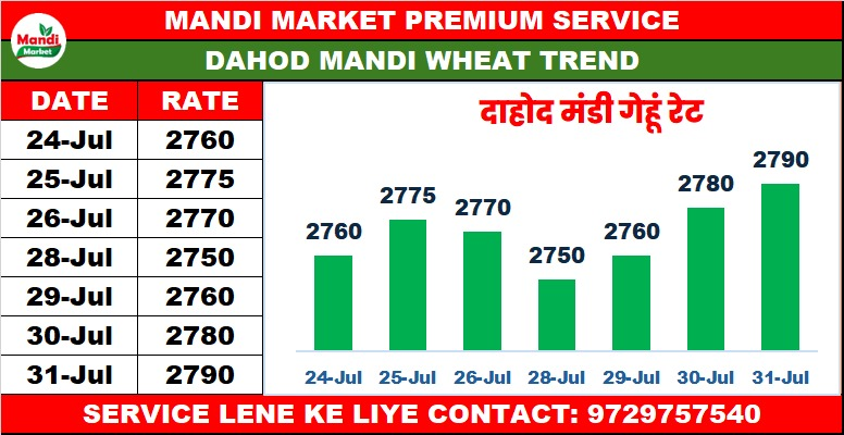 गेहूं लोकल (Wheat Local) भाव ₹ 2675 से ₹ 2700 स्थिर