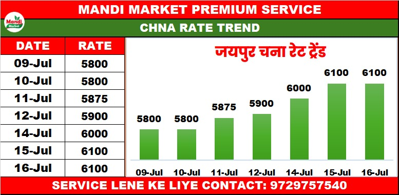 राजस्थान जयपुर लाइन चना भाव ₹ 6100 तेजी ₹ 25