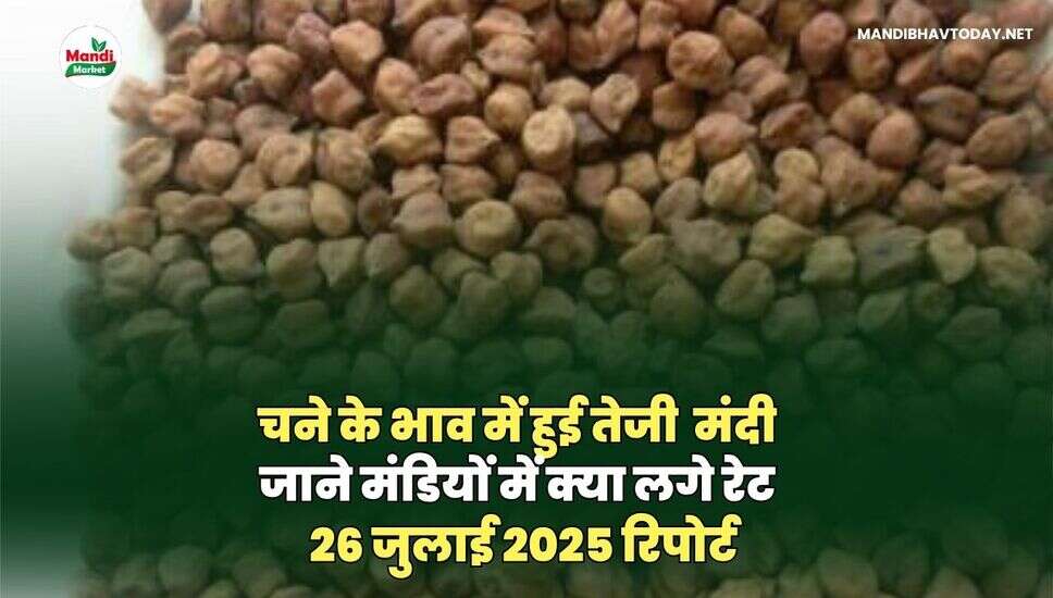 त्योहारी सीजन के चलते बाजार जल्दी ही ऊपर उठ सकता है, हालांकि तंजानिया से आवक के चलते बाजार पर हल्का दबाव पड़ सकता है लेकिन किसी बड़ी गिरावट की संभावना नहीं है। दिल्ली मंडी से शुरुआत करें तो वहां कल राजस्थान बेस्ट चना के भाव ₹6,375 प्रति क्विंटल बोले गए, जबकि मध्य प्रदेश लाइन चना भी ₹6,325 पर आ गया। महाराष्ट्र की जालना मंडी में भी चना के भाव ₹5,975 प्रति क्विंटल रह गए और आवक लगभग 200 बोरी ही रही, जो सामान्य से कुछ कम है। उधर गुजरात की गोंडल मंडी में चना के भाव ₹5,900 प्रति क्विंटल पर स्थिर बने रहे, कुल आवक करीब 1,500 बोरी रही, सोलापुर मंडी में बेस्ट क्वालिटी चना ₹6,650 प्रति क्विंटल पर स्थिर रहा, हालांकि वहां 3 से 4 ट्रक की ही आवक दर्ज की गई।